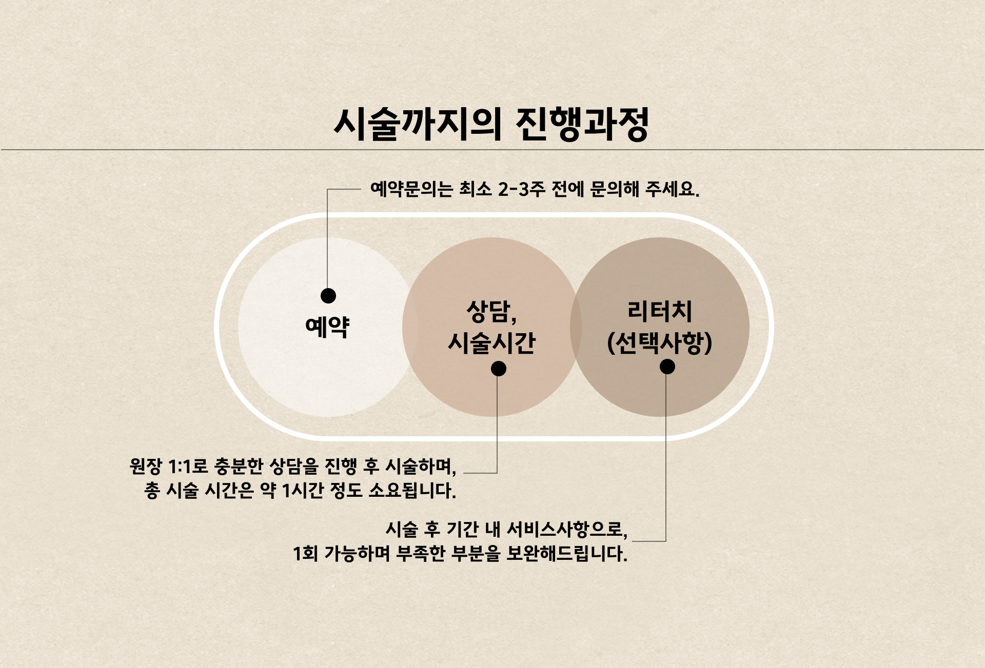 원하시는 시술 부위의 색소 침착 정도를 파악한 후 시술이 진행 되며, 추가 시술이 필요한 경우 상담 후 안내드립니다.